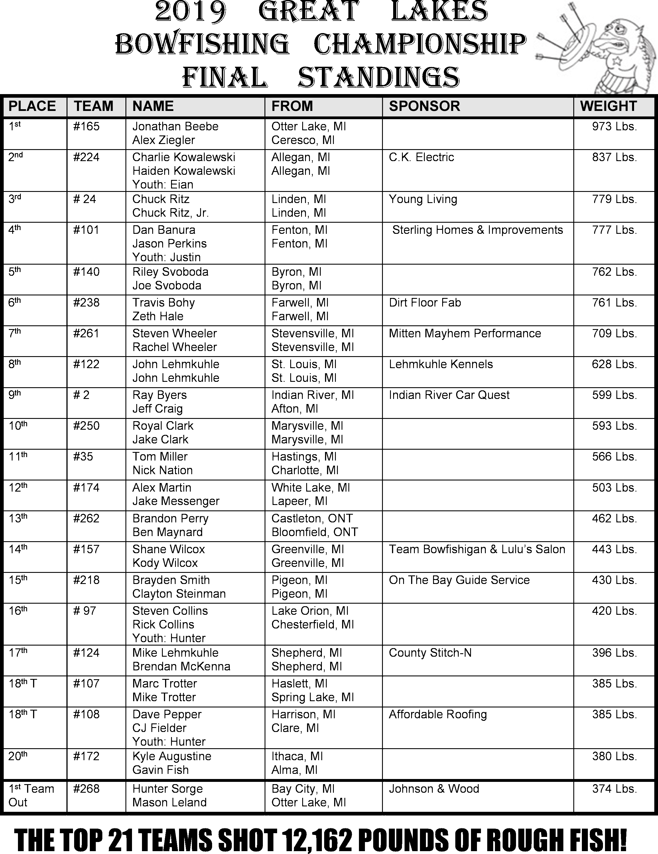 Easterbrook, Jr. The championship team arrowed 973 pounds of rough fish during